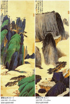 张大千(1899—1983),大千的山水画,从清初四僧上溯明仲青藤、白阳至元四家、荆关董巨及敦煌壁画,临摹历代名迹、遍游名山大川,师古而出新,境界高绝。后期久居海外,直接与西方艺术接触,又致力将西画的长处融于中国画之中,创造了一种被世界所接受的全人类艺术语言,取得了举世瞩目的成就。观其画作,风姿俊逸,使人尘思尽去,雅致自生,不醉不归!