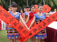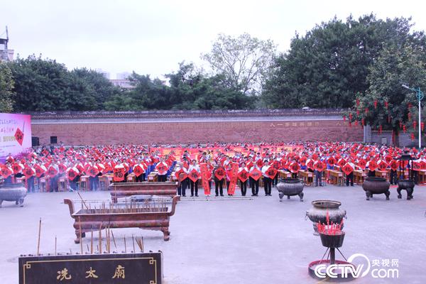 12月25日,“春联来了”——第四届全球春联征集书写活动走进广东高州。高州市冼太庙门前广场,热闹非凡,一千多名小书法家在广场上集体写“福”字、写春联,向全国人民拜年送福。