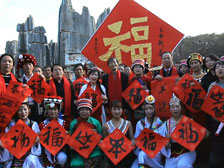 1月17日,2015羊年春节“万福送万家”活动第五站,在厦门中国少年先锋队队歌广场举行,五百名孩子共同书写万“福”送台湾同胞。