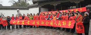 1月9日,2015羊年春节“万福送万家”活动第二站,著名书法家走进农家院,为农民朋友写春联,写“福”字,送福到家庆新年。