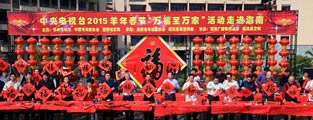 春节是中国的传统节日,写“福”字、贴春联是春节的传统习俗。由中央电视台、中国楹联学会、中国书法家协会共同主办,中国网络电视台承办2015羊年春节春联征集线下“万福送万家”活动,自2015年元月启动以来,得到了社会各界的广泛支持和积极响应。在全国各地倡议了万名书法爱好者在北京、福建、山东、云南等地共组织了十余场书法家写“福”字送石油工人、送农民朋友、送边防部队、送军烈属、送留守儿童、送台湾同胞的活动。全国各省市积极响应,使本次活动在全国各地受到广泛欢迎和赞誉。