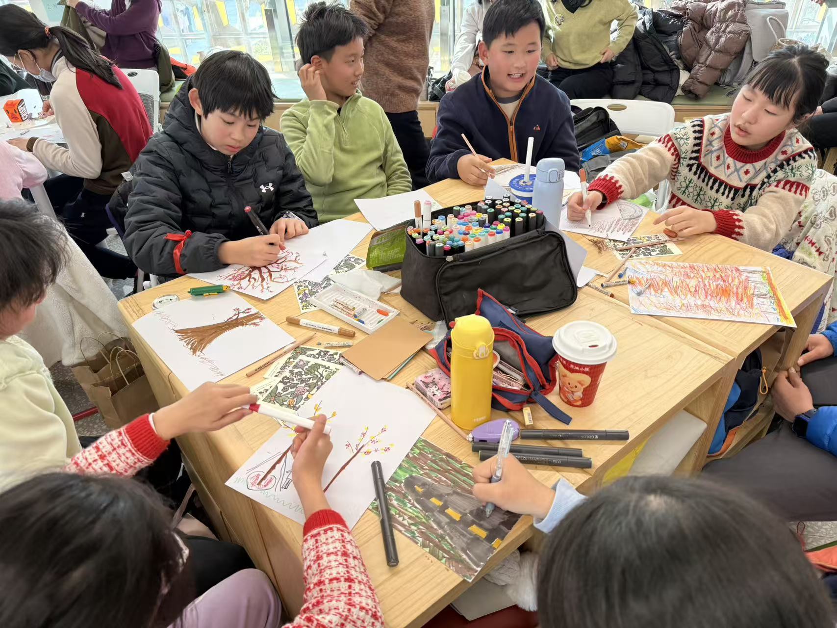孩子们用银杏叶、陶泥、吸管等材料挥洒创意,既有粘土还原的植物园角落,也有叶片拼接的生态图景,每件作品都承载着对自然的思考。